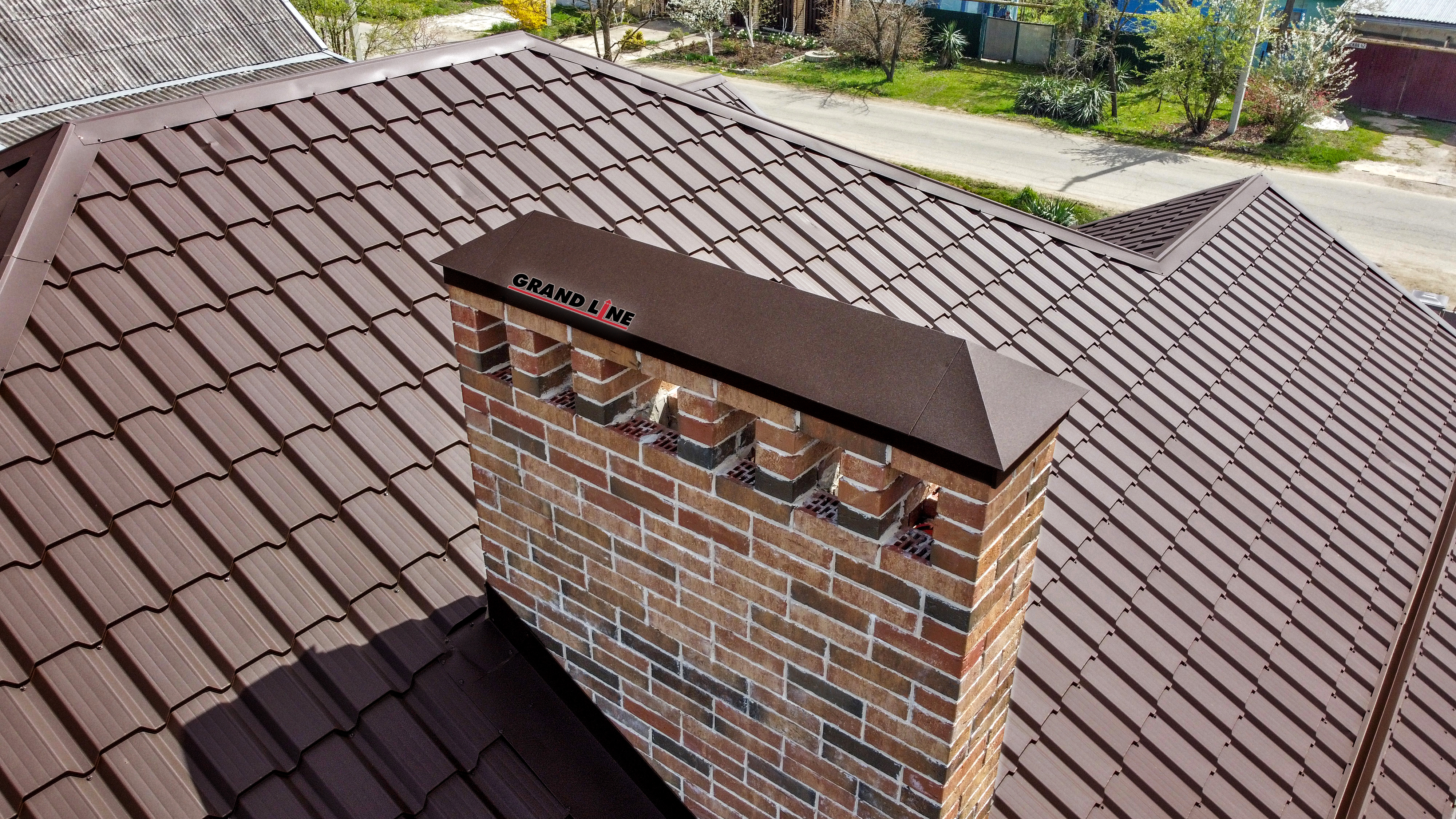 Темно-коричневый оттенок добавит элегантности и стиля вашему дому, придавая ему уникальный вид. Металлочерепица Grand Line легкая в установке, прочная и долговечная, что делает ее отличным выбором для любого типа кровли.