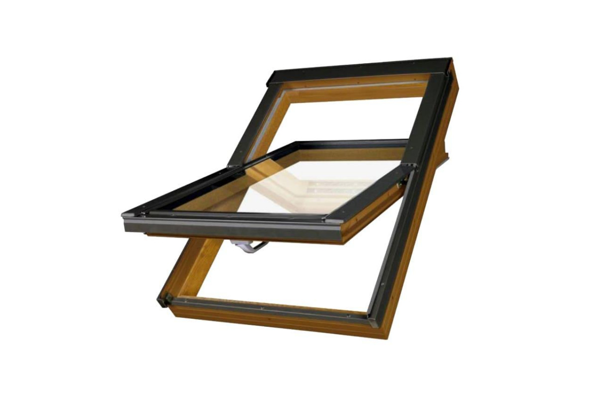 Управление окном происходит при помощи многофункциональной ручки в нижней части оконной створки. Створка фиксируется под углом 160º для удобного мытья. Для установки обязательно необходим специальный оклад в зависимости от типа кровли и способа монтажа. Сфера применения: для любых кровель с углом наклона 15-90º.