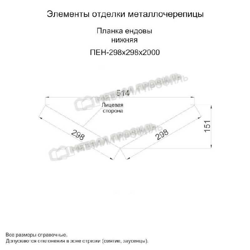 • Планка ендовы нижняя 298х298х2000 NormanMP (ПЭ-01-1014-0.5) не ржавеет.