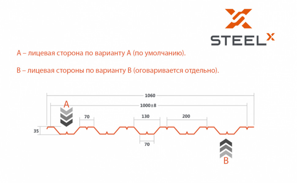 Профнастил SteelX НС35 имеет толщину 0,35 мм, что делает его легким и удобным в монтаже. Благодаря специальному профилю, он обладает высокой прочностью и устойчивостью к нагрузкам.