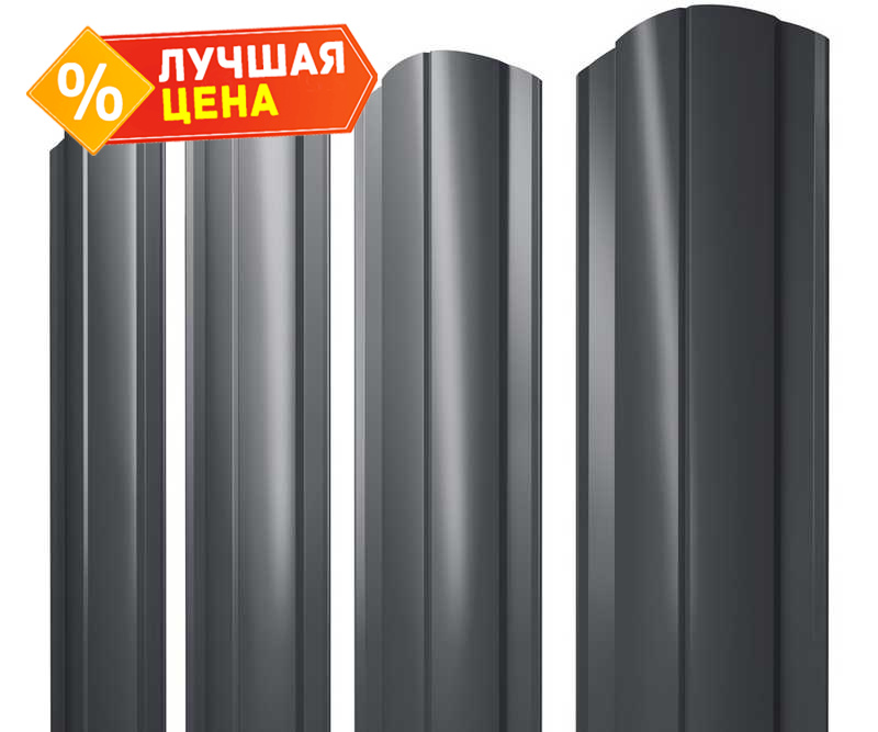 Штакетник Круглый фигурный Grand Line 0,5 Satin Matt RAL7024 Мокрый Асфальт