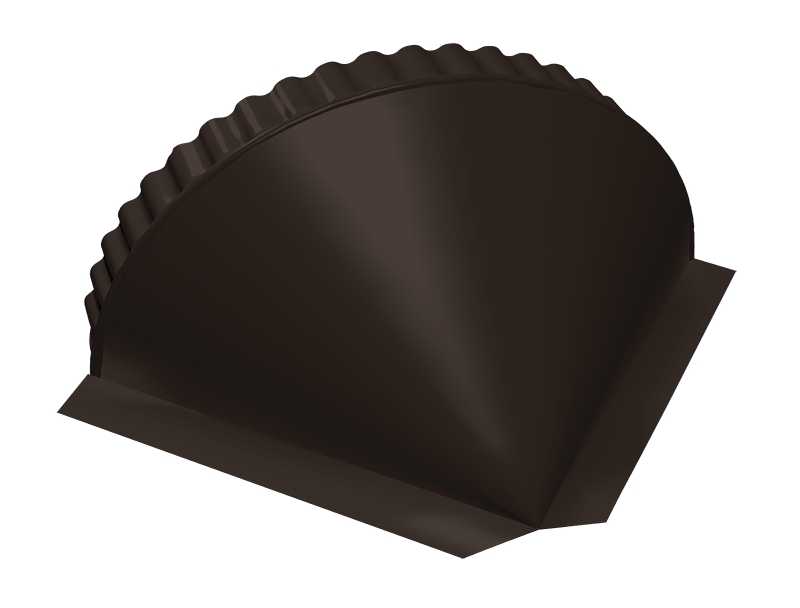 При монтаже полукруглого конька для эстетики необходимы заглушки на торцах и сопряжениях конька и хребта (торцевая)  и окончаниях хребтов (конусная).